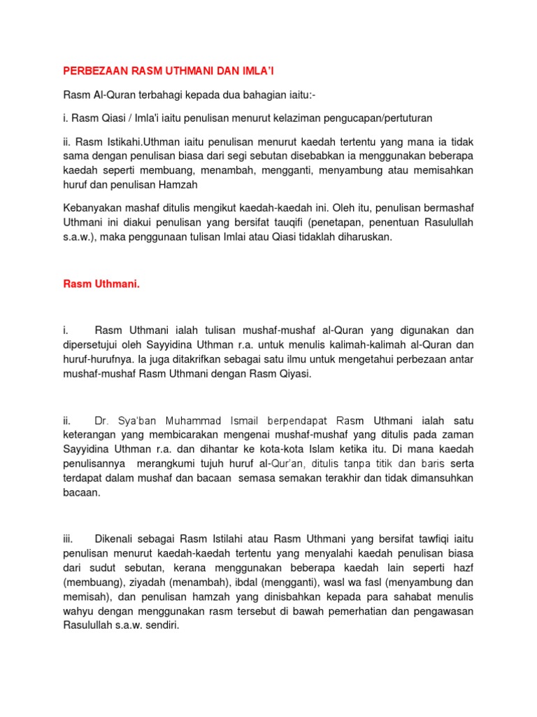 Perbezaan Rasm Uthmani Dan Imla Pdf